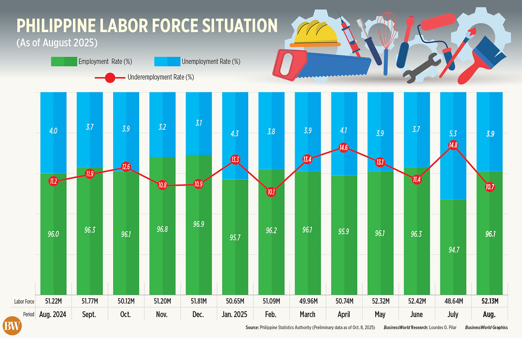 PSA’s Mr. Mapa mentioned that the labor market in September might have been influenced by the array of typhoons and the recent 6.9-magnitude earthquake that struck southern Philippines.